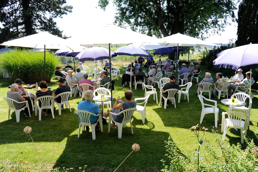 66 gutgelaunte Seniorinnen und Senioren folgten am Dienstag, 16. August 2022, unserer Einladung zum traditionellen und beliebten Gartenfest im schönen Pfarrhausgarten auf dem «Berg».