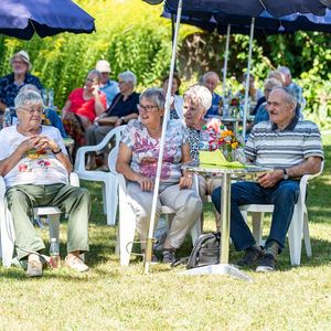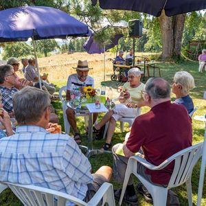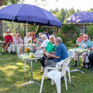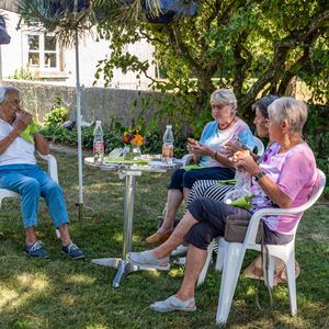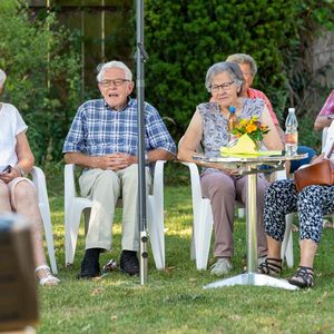 66 gutgelaunte Seniorinnen und Senioren folgten am Dienstag, 16. August 2022, unserer Einladung zum traditionellen und beliebten Gartenfest im schönen Pfarrhausgarten auf dem «Berg».