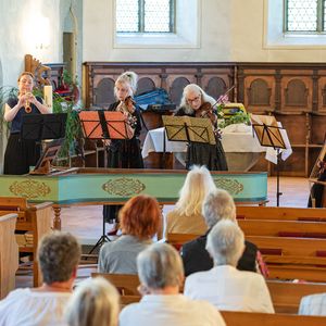 Musica Poetica begeisterten das Publikum mit einer Mischung von ernster und schwerer bis hin zu leichter und unterhaltender Musik. Im Publikum anwesend war Hans Bergmann, der extra für die Musikgruppe das Concerto c-Moll von Sebastian Johann Bach für Oboe Violine und Bass continuo rückübertragen hat.