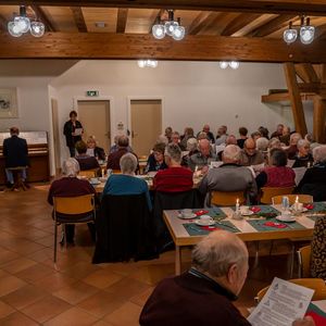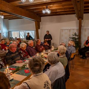Mit einem Schmunzeln nahm Pfarrer Rolf Weber diesen Umstand auf und machte daraus das Thema der diesjährigen Adventsfeier: «Überraschung»! So wusste er zu berichten, dass die Schafe in Palästina jeweils nur bis Ende Oktober auf den Felder seien. Und wenn die Hirten die frohe Botschaft auf dem Felde bei den Schafen erfahren haben (gemäss Lukas-Evangelium 2), dann seien wir mit Weihnachten im Dezember eigentlich viel zu spät. Zur Freude der anwesenden Frauen und Männer erstrahlte das „zufällig“ herumstehende Tännlein aber doch in hellem Lichterglanz.