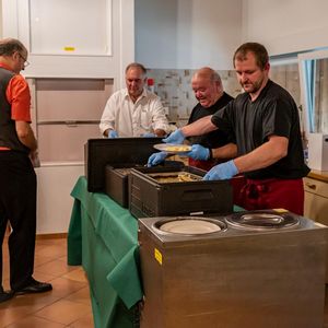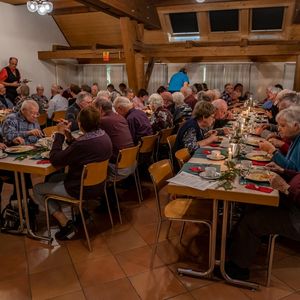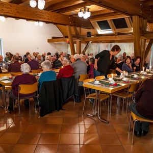 Die von Allen erwarteten Überraschung an diesem Nachmittag war der feine Imbiss: Hackbraten mit Kartoffelgratin und Rüebli. Was für eine Überraschung! Wer wollte, konnte Nachschlag von allem haben. Die feine gebrannte Crème zum Dessert wurde für den einen oder andern noch zur letzten Überraschung, oder besser gesagt, zur Herausforderung.