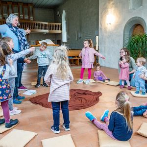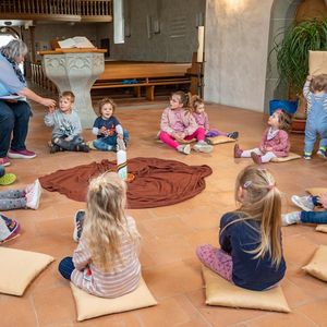 Zum ersten Mal haben wir uns am Samstag, 13. Mai 2023 in der Kirche zum ‚Fiire mit de Chliine‘ getroffen. Mit 14 Kindern und ihren Begleitpersonen entdeckten wir die Schöpfungsgeschichte. Die Geschichte, die erzählt, wie Gott die Welt gestaltet hat. Wir gingen ganz zum Anfang zurück, so wie die Menschen in der Bibel es sich vorgestellt haben.