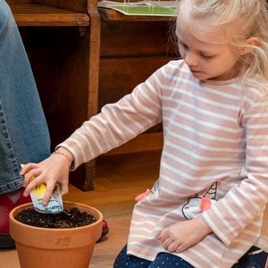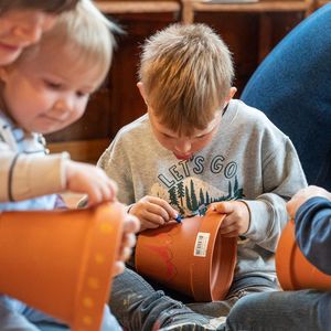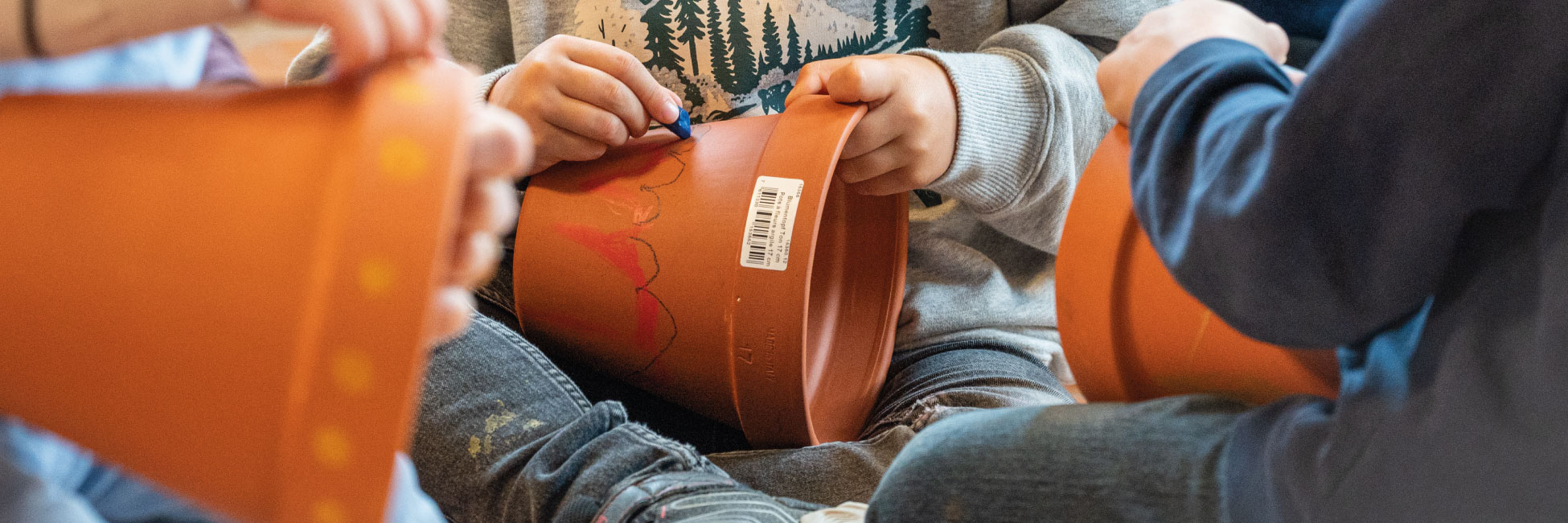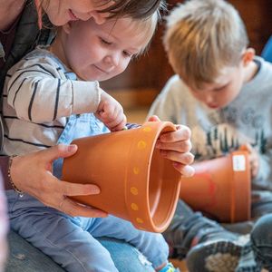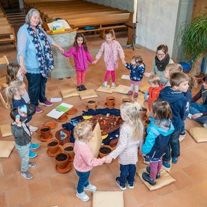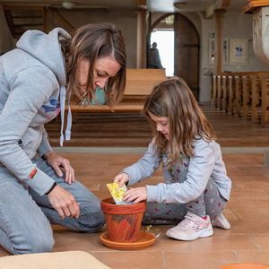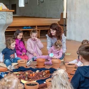 Singen mit Bewegungen, kurze Gebete, Geschichte mit Legematerial erzählt, so entdeckten die Kinder und machten mit. Einen Tontopf anmalen und selber Erde ‚schöpfen‘ vertiefte das Gehörte und Erlebte. Und zum Schluss durften sie die Blumensamen säen. Nun gehört ihnen ein Stück Erde, wo sie Sorge tragen und staunen können, was alles wächst. Viel Glück dazu!