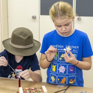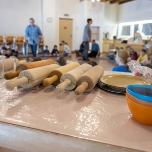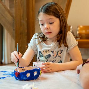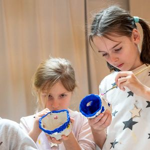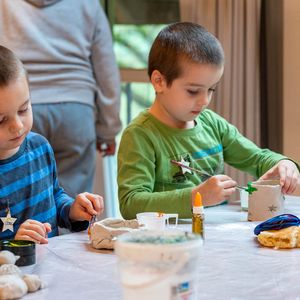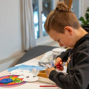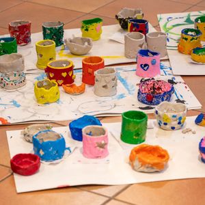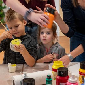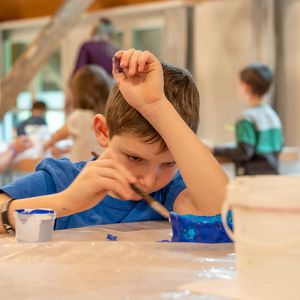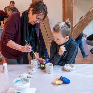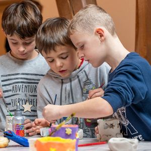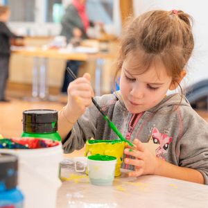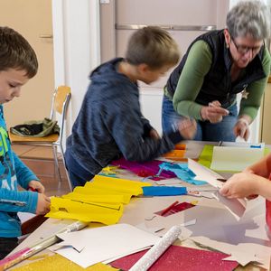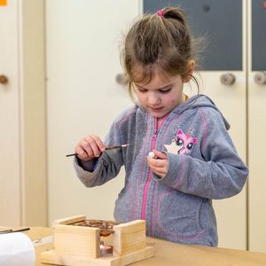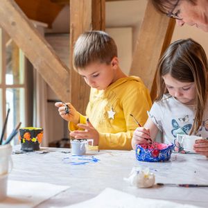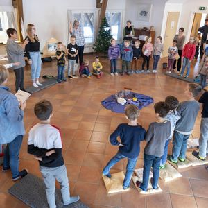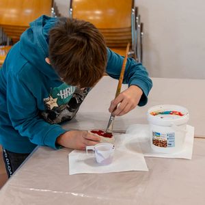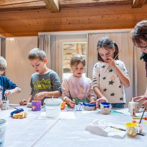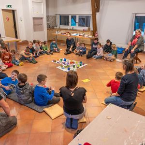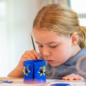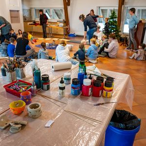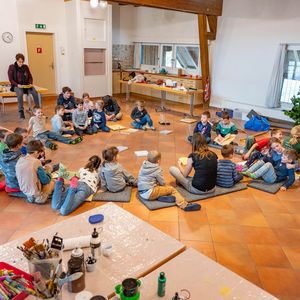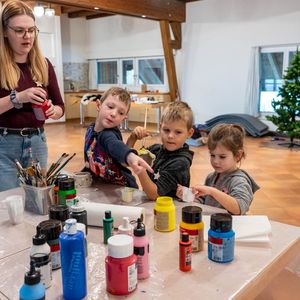 'Zünd es paar Liechtli a' wird gesungen und gleich ausprobiert. Nach einer ersten Runde Theater einstudieren, mit den vielen lebendigen Schäflein keine leichte Sache, lautet die Frage; Wie sieht wohl mein Windlicht aus, ist es gut getrocknet? Nun geht's ans Anmalen. Jedes Kind findet seine Inspiration, seine Farbe. Welche Freude!
