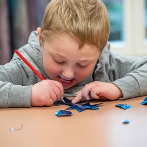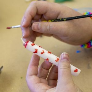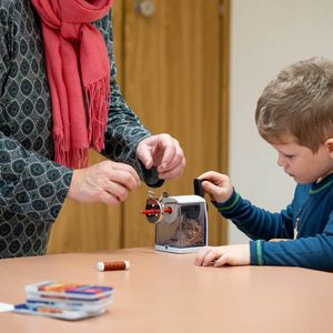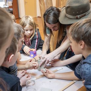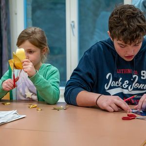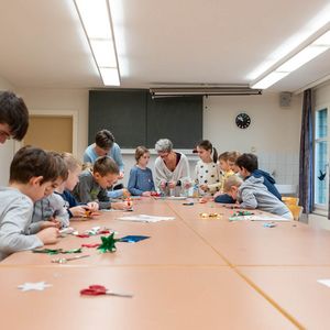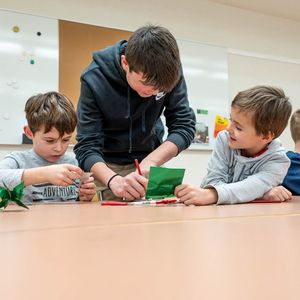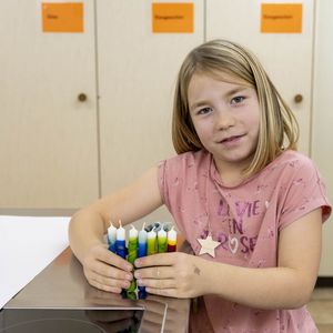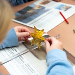 Daneben werden die Sterne für das Adventsfenster verziert. Sie leuchten in allen Farben. Und auch die Kerzlein zum Verschenken an die Fensterbesucher*innen werden immer mehr. Geduldig tauchen die Kinder die Baumkerzlein ins flüssige Wachs und die Ideen werden immer ausgefallener, was man mit einem Kerzlein alles hervorzaubern kann.
