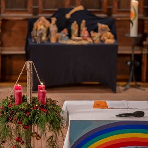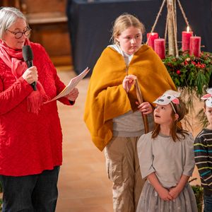 Das Theater ist wunderbar, der Dieb, der Wolf und der Bettler bekommen das Lichtlein von der Hirtin Simone, doch das Lämmlein ist wieder verschwunden... bis Simone uns alle zum Licht führt, beim Adventsfenster. Und siehe da, das Lämmlein liegt beim Jesus-Kind in der Krippe. Umgeben von vielen Kerzen und leuchtenden Sternen. Und auf einmal wird alles hell!