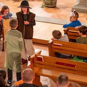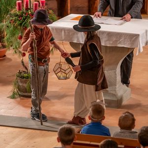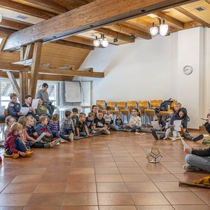 Am Nachmittag gehen wir zum ersten Mal zum Üben in die Kirche. Langsam wird's ernst. Die Hirtin Simone kennt ihren Weg, aber am Schluss ist das kleine Lamm wieder verschwunden... keiner weiss wohin!?
