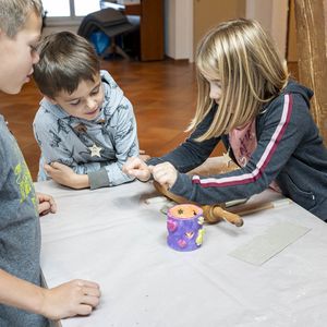 Die Kinder liessen sich dadurch nicht beirren, bastelten ihr Windlicht aus Ton, verzierten Kerzen und bereiteten Sachen für das Adventsfenster vor. Es war ein emsiges Treiben, zwischendurch brauchte es auch mal eine kleine Pause z.B. beim Traktorfahren..., und schwupps war der Morgen vorbei. Mit viel Freude auf den nächsten KiK-Tag wurden die Kinder verabschiedet.