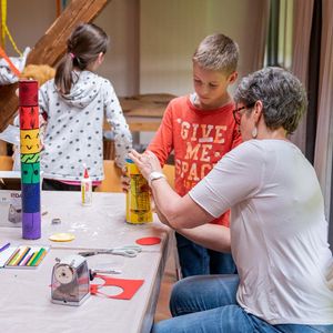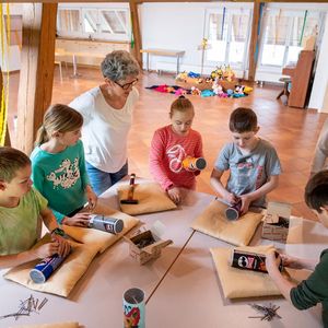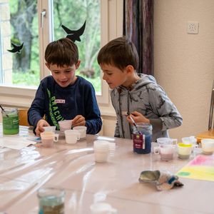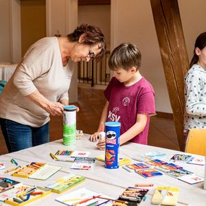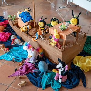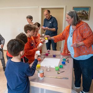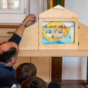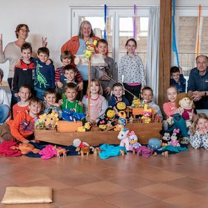 Noah und seine Arche standen im Mittelpunkt. Pfarrer Rolf Weber erzählte die bewegende Geschichte und der vorwitzige «Alex» hatte viele Fragen dazu. Es wurde gesungen, gelacht und gespielt. Ein Regenrohr wurde gebastelt und die Kinder lernten die wunderbare Welt der Farben kennen.