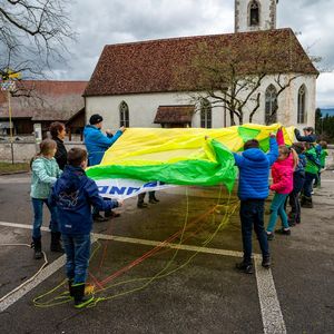 «Unger em Rägeboge» so heisst das Moto der diesjährigen KiK-Tage. Am Samstag, 1. April verbrachten wir (Susan Weber, Ursula Ingold und Ruth Grossenbacher) mit 17 fröhlichen Kindern ab der 1. Klasse einen gelungenen Tag.