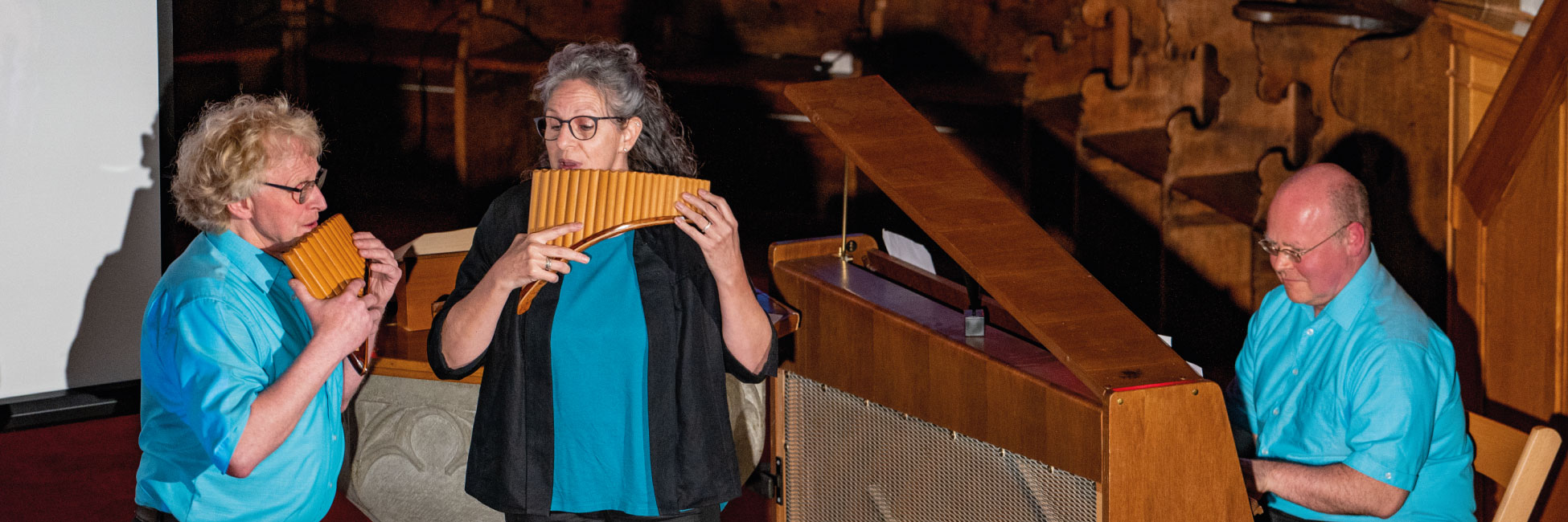 Mit dem Programm „Wenn Worte nicht mehr ausreichen“ wurde den Anwesenden eine Reise um die Welt präsentiert. Es fehlte an Nichts und die Ohren der Musikliebhaber wurden mit lateinamerikanischen, irischen und europäischen Musikstücken verwöhnt. Gegen Ende des Konzertes kam als „Gastmusikerin“ Ivana Theiler mit Ihrer Panflöte dazu. Als Schülerin von Jörg Frei, eröffnet sie Anfang August 2023 eine Panflöten-Schule in Herzogenbuchsee. Bei einem aus Holland stammenden Stück wurden Jörg Frei und Ivana Theiler von Georg Masanz am Klavier begleitet. Nach der letzten Darbietung, die wiederum auf der Empore gespielt wurde, verwöhnten die zwei Musiker die Zuhörer mit einer Zugabe. Nach dem Konzert wurden alle Besucherinnen und Besucher von Ivana Theiler mit einem Blumen-Präsent verabschiedet. Dieses Konzert war ein Fest für die Ohren und dank der Live-Übertragung auch äusserst spannend und sehenswert.