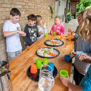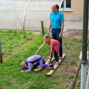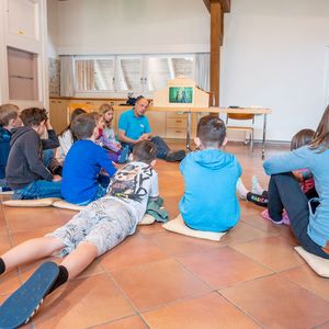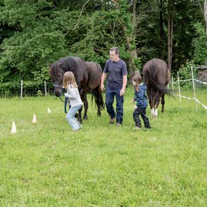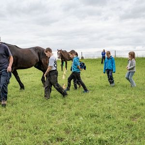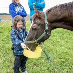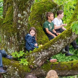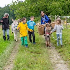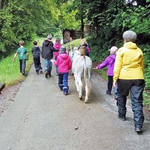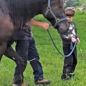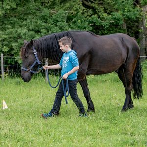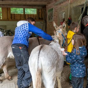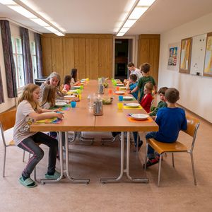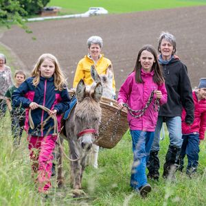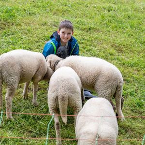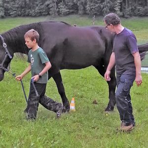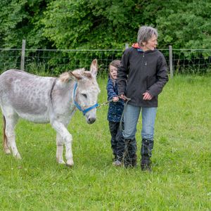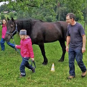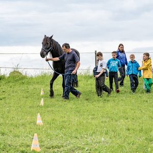 Die leckeren Spaghetti mit Bolognaise waren schnell weggeputzt. Dass es kein richtiges Tierfleisch war gehörte zu unserem Plan... am Schluss gabs die Auflösung, keine/r hat reklamiert. Dann kam endlich die Auflösung unserer Überraschung. Wir fuhren mit den Autos auf den Hof von Franziska und Peter Schibli nach Grasswil. Nur ein Kind kannte dieses kleine Paradies schon. Welch Glück! Ein Teil der Kinder besuchte die Kaninchen, streichelte die Esel, gab den Hühner Futter und versuchte den Enten näher zu kommen. Die andere Gruppe übte mit den Pferden Slalom-Laufen und beglückte die Schafe mit feinem Essen. Nach dem Zvieri (auf dem besten Kletterbaum von ganz Grasswil) wurde natürlich getauscht. Die Begegnungen der Kinder mit den verschiedenen Tieren war ein Highlight.