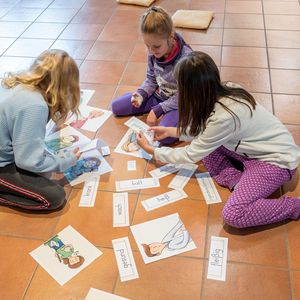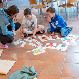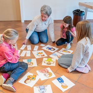 Das Motto passte durch den ganzen Tag. Angefangen mit gutem Wetter (d.h. kein Regen!!). 13 Kinder trafen am Samstagmorgen fröhlich im Kirchgemeindesaal ein. Der Stimmungsbarometer zeigte jedoch, dass nicht alle ganz so fröhlich waren. Doch das änderte sich schnell. Wir lernten die Giraffe kennen, mit ihrem langen Hals, ihrem deshalb grossen, ja sehr grossen Herz. Sie hat auch ein Herz für alle anderen Tiere, besonders für den Wolf. Sein Geheule und Gejaule ist manchmal eine schwierige Sprache. Doch die Giraffe versteht, was er braucht und übersetzt sein angstmachendes Getue gekonnt. Tolle Kommunikation! Das üben wir am Nachmittag. Zuerst bei den Tieren. Doch die Geschichte von Franz von Assisi und dem Wolf von Gubbio geht dem voraus. Wie schön, dass die Menschen verstanden haben, dass der Wolf einfach Hunger hat. Sie geben ihm Nahrung und er lässt dafür ihre Schafe leben. So einfach ist Frieden????.