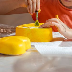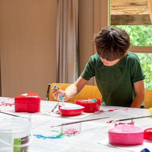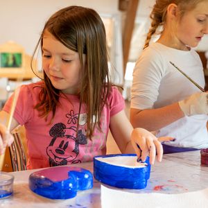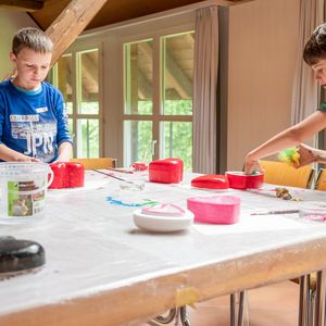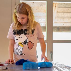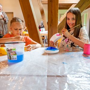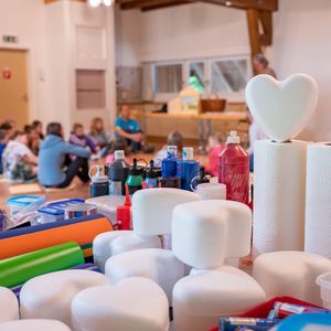 Am Vormittag beschäftigen wir uns mit einem grossen Herz. Dieses wird angemalt, beklebt, ausgekleidet und mit Pailletten bestickt. Wer so ein Kunstwerk geschenkt bekommt kann sich glücklich schätzen! Ein paar Kinder waren nach 10 Minuten fertig natürlich, da war der Töggelikasten im oberen Stock Gold wert...
