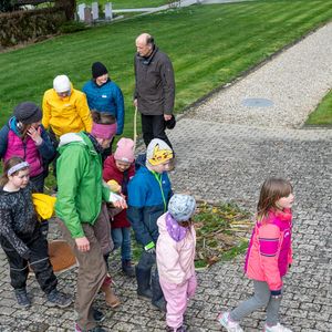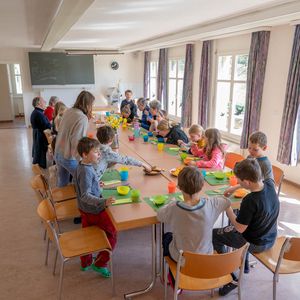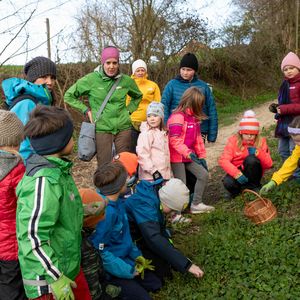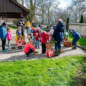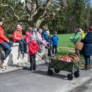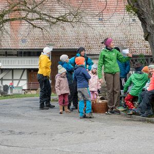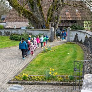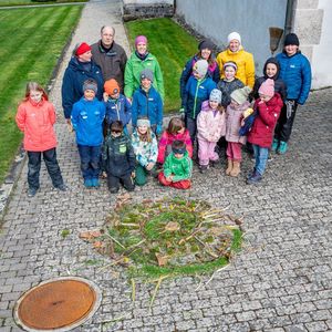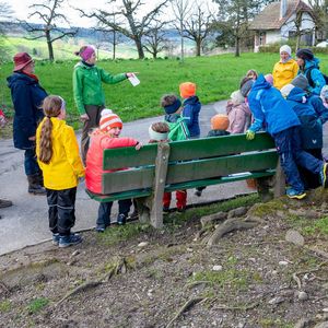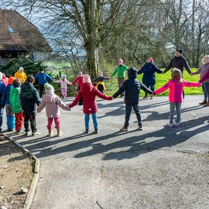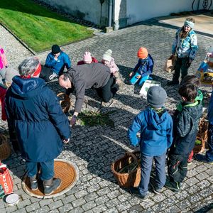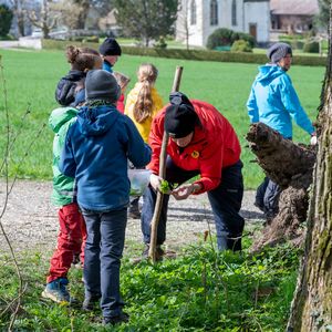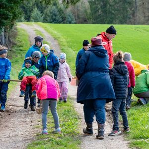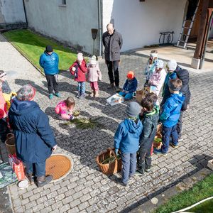 Sturm, Regen, kalt; dies die Wetter-Vorhersage für den ersten KiK-Tag im 2024. Doch davon liessen wir uns nicht beeindrucken. Unser Thema in diesem Jahr lautet: "Mitenand + fürenand". An jedem KiK-Tag wollen wir erkunden, was es dazu braucht und was wir dazu beitragen können, dass wir friedlich miteinander leben und füreinander da sein können. Der erste Tag stand unter dem Motto: "I dr Natur - mit dr Natur". Und der Wettergott war gnädig mit uns und wir durften bei viel Sonnenschein und trockenen Fusses in die Natur. Die Geschichte von Franz von Assisi zeigte uns auf, dass es sinnvoller und wertvoller ist, mit der Natur zu leben, als schöne und teure Kleider zu tragen. Franz entschloss sich, Mönch zu werden und immer mehr Menschen schlossen sich ihm an. Auch wir lebten an diesem Tag von und mit der Natur. Die ausgiebige Kräutersuche ergab eine köstliche Brennesselsuppe. Frischkäse und Butter wurden von den Kindern mit Löwenzahn, Giersch, Bärlauch und Sauerklee verfeinert und mit Veilchen- und Margritli-Blüten dekoriert. Die Kinder staunten, was man alles essen kann. Und das es tatsächlich auch noch lecker war????. Laudato si - gelobt sei die Natur! Während des Mittagessens kochte der Spitzwegerich-Sirup für die Hustentäfeli. Während wir die lustigen und köstlichen Vogelnester essen durften. Am Nachmittag beobachteten wir alles mögliche im Lupenbecher, der Käfer war cool. Die kostbaren Naturgirlanden schmücken nun den Eingang der Kirche, die Moostierchen bewachen ihn und zum Schluss übten wir uns im Miteinander und kreierten zusammen ein Naturmandala und nun wissen wir es, es braucht 9 Kinder, um die alte Linde zu umarmen!