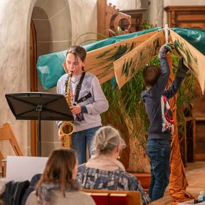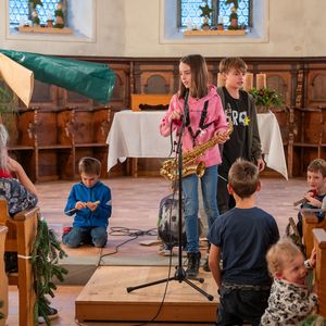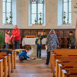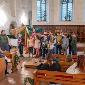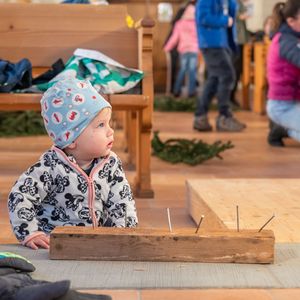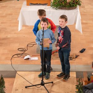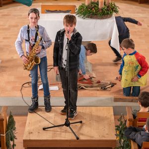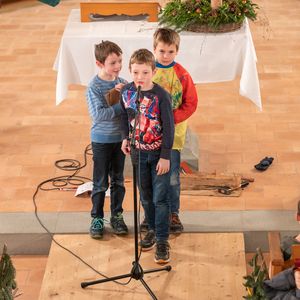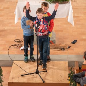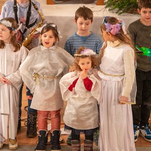 Sonntag, 8.12., unsere Musikerinnen Janna und Nadine begrüssten uns mit einem stimmigen Intro von unserem Themen-Lied in der Kirche. Unter den Kindern knisterte es und die Theater-Crew war schon im Spiel. Da musste eine Palme gemalt werden, Holz vernagelt, Krippe geflickt und zwischendurch Musik gemacht werden. Und das ganze natürlich nach Plan! Die Kinder verführten die Gäste in ihr Spiel, natürlich war seine Rolle die wichtigste. Doch nur zusammen kommt es gut. Und das muss gefeiert werden. "Ds Zäme si" wurde wirklich gefeiert. Nach dem Fackelweg mit Engel- und Hirtenmusik kamen wir beim Stall an. Aber halt, es sagte vorher niemand etwas von einem echten Esel, echten Schafen mit einem munzigkleinen Lamm, und... einer echten Familie im Stall mit einem munzigkleinen Baby. Die Kinder waren selber ganz überrascht - ja, so wollte es Franz - wie echt! Das machte Eindruck und die Weihnachtsgeschichte wurde lebendig. Der Schluss vom Theaterstück zeigte auf, dass es zusammen geht, es braucht eben jeden und jede mit ihren Talenten: