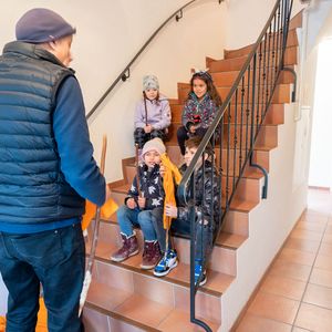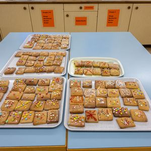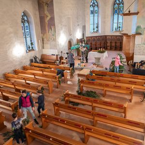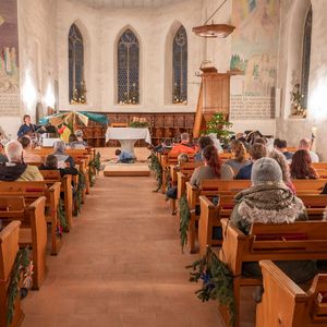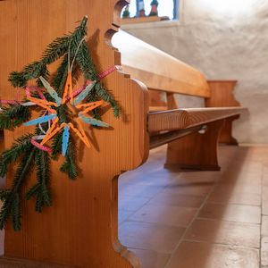 Die anderen durften später auch in die Kirche kommen zum Schmücken. Da gabs Sterne und Eselchen aus Holzchlämmerli, Papierengel. Sogar der Tannenbaum (mit Namen Gerasimov) durfte nicht fehlen. Die Kleinsten hängten die Kugeln und die Sterne dran. Das Singen in der Kirche tönte nochmals schöner als im Saal. Die Erwachsenen waren sich sicher, das kommt gut. Nach dem verdienten Zvieri blieben die Kinder sitzen und verzierten mit Wonne die von der Küchencrew gebackenen Lebkuchen. Und als alle Hände ganz klebrig waren, wir die letzten Hinweise gebracht haben für die kommende Feier, verabschiedeten wir die Kinder (natürlich nach dem Händewaschen) und freuten uns gemeinsam auf Franz's Weihnachten.