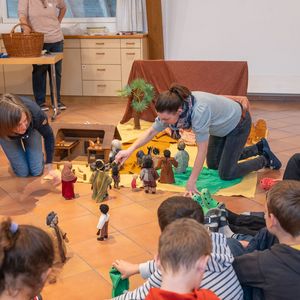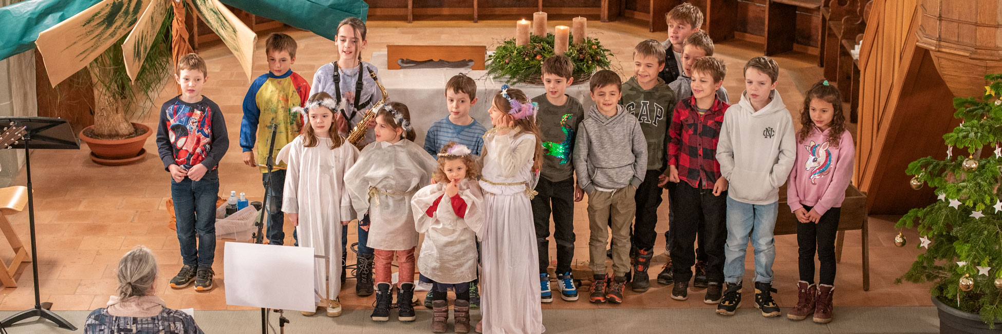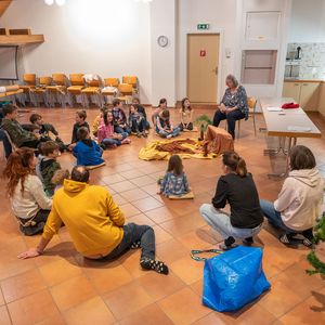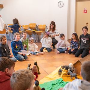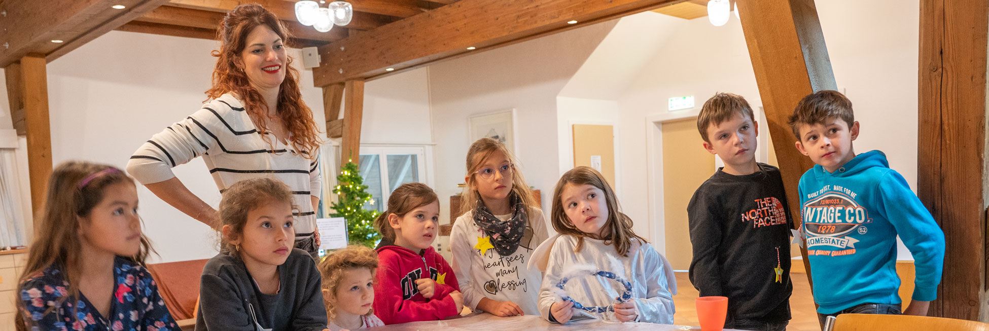 Am Samstagmorgen, 30.11., war um 9 Uhr alles bereit für eine Gruppe Kinder, die mit leuchtenden und fragenden Augen im Halbkreis im Kirchgemeindesaal sassen. Weihnachten begann.
