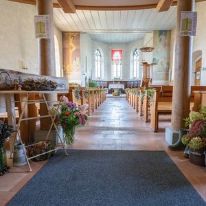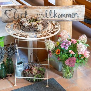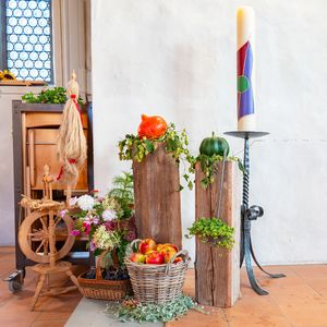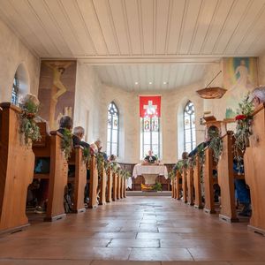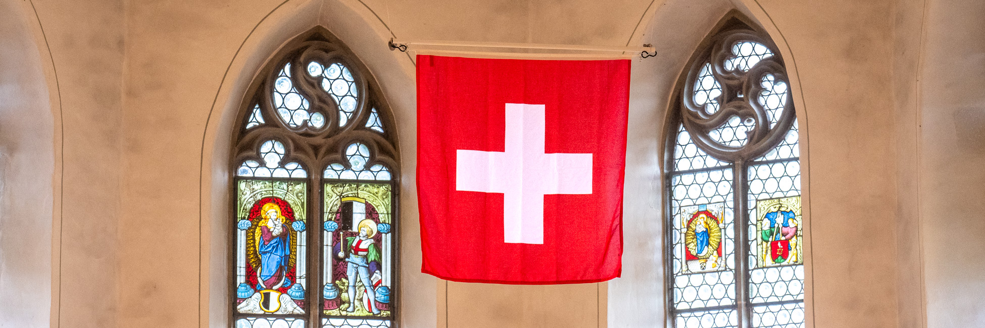 Wenn es am Samstagnachmittag vor und in der Kirche nur so wuselt, dann sind die Landfrauen am Werk. Unter fleissigen Händen und ab und zu einem herzhaften Lachen entsteht die Dekoration für den sonntäglichen Erntedank-Gottesdienst. Schon am Abend vorher hatte der Pfarrer mit der Sigristin die Schweizerfahne im Chor der Kirche aufgehängt: untrügliches Zeichen, dass der Eidgenössische Dank-, Buss- und Bettag bevorsteht.