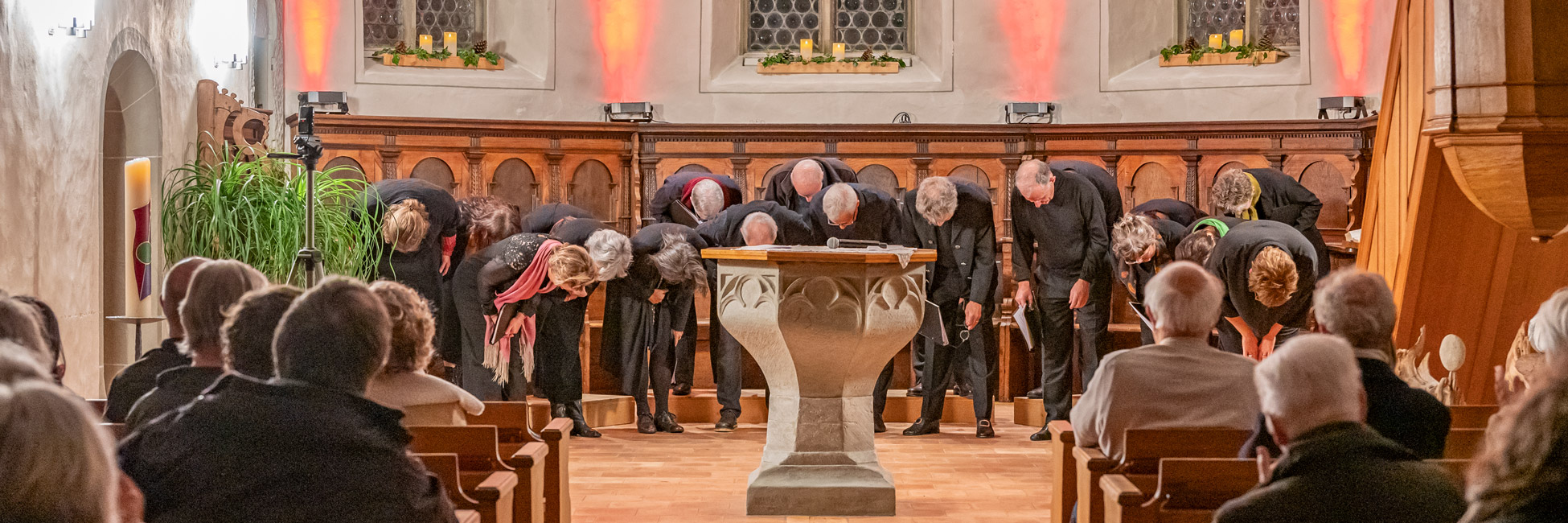 Wir alle wurden durch nettes Personal empfangen. Parkplatzeinweisungen, Raumzuteilung, Lichteinstellungen, Fotograf, Podeste für eine optimale Choraufstellung, und nicht zu unterschätzen – eine wohltemperierte Kirche – alles wurde zu unserer Zufriedenheit, für unser Wohlbefinden getan. Das war sehr angenehm, nie selbstverständlich und hat sicher zum guten Gelingen unseres Konzertes beigetragen. Die Kirche bietet eine tolle Akustik und die Raumgrösse ist für unser Ensemble ideal.