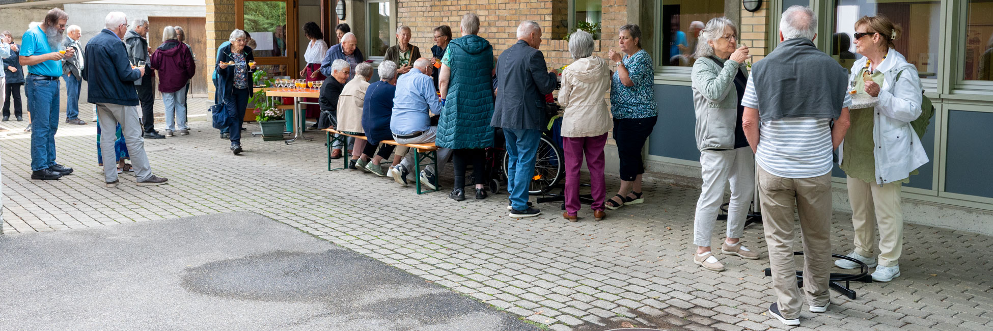 Nach dem bewegenden und stimmungsvollen Gottesdienst waren alle Besucher herzlich eingeladen, den Morgen bei einem festlichen Apéro vor dem Kirchgemeindehaus gemeinsam ausklingen zu lassen. Über 40 Teilnehmende nutzten die Gelegenheit, den letzten Sommer-Dreiblattgottesdienst 2025 in guter Gemeinschaft und bei angeregten Gesprächen zu beschliessen.