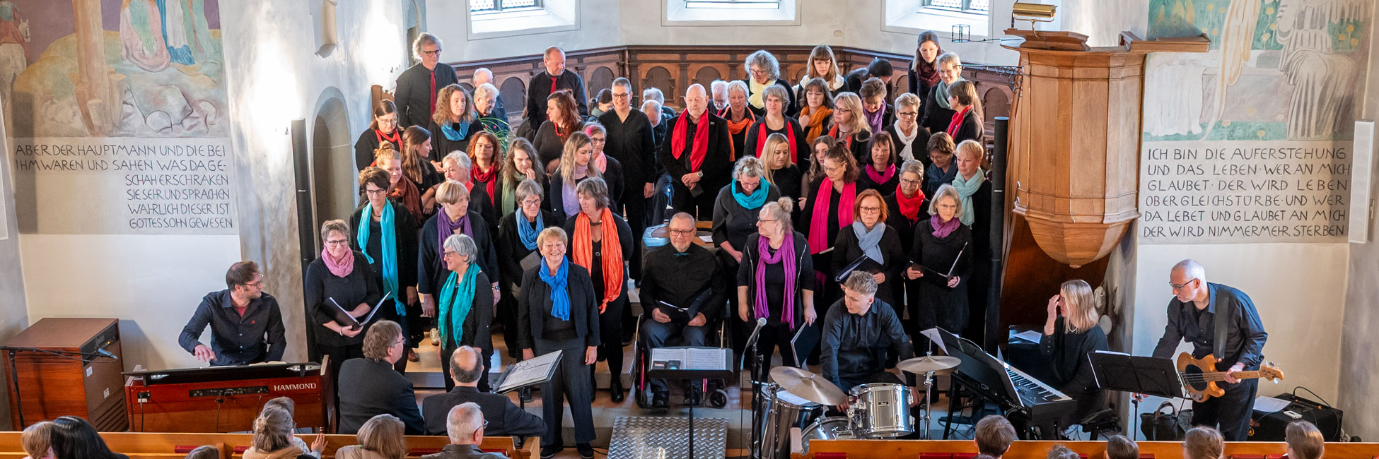 Und tatsächlich, einmal mehr war der Sonntagmorgen mit dem Gospelprojekt-Chor der Landfrauen Seeberg etwas ganz besonderes. Über 40 Frauen und Männer hatten sich in 6 Abendproben in der Freude und Leidenschaft des Gospelsingens versammelt. Die Begeisterung war so gross, dass auch noch ein Abendgottesdienst in Koppigen und ein weiterer Morgengottesdienst in Wynigen besungen wurden. Und der musikalischen Leitung von Adrian Menzi, begleitet von der Band mit Katharina Lüthi (Piano), Christoph Schnyder (Hammondorgel), Gino Menzi (Drums) und Colin Hess (Bass).