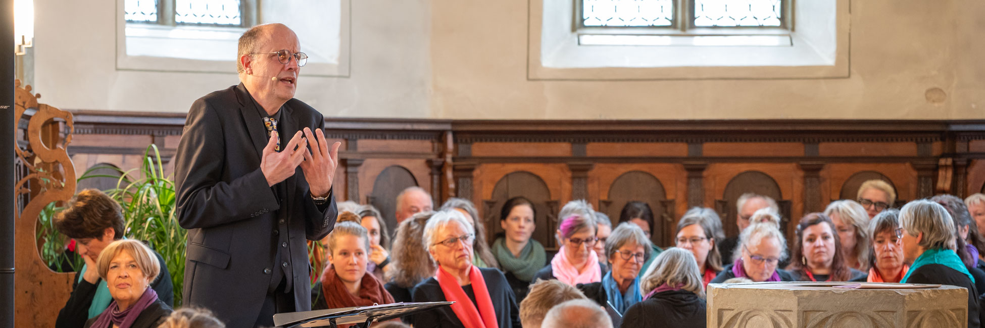 "Get together in the name of the Lord" - die englische Gottesbezeichnung "Lord" war denn auch der Ausgangspunkt des Predigtthemas. Der Gottesname "Lord" klingt für viele schöner als das deutsche "Herr". Gott sei aber gar kein Mann, erklärte Pfarrer Rolf Weber in der Predigt. Genau genommen sei das ein Hilfswort für "Gott", weil die Juden den Gottesnamen "JHWH" nicht aussprechen dürften, würden sie sich mit dem Wort "Adonaj" - "mein Herr" behelfen. Wenn "Adonai" ausgesprochen werde, dann wüssten sie, dass damit "JHWH" gemeint sei. Die Männer, die die Bibel als Erste in die deutsche Sprache übersetzt hätten, seien sich dieser Nuance zu wenig bewusst gewesen.