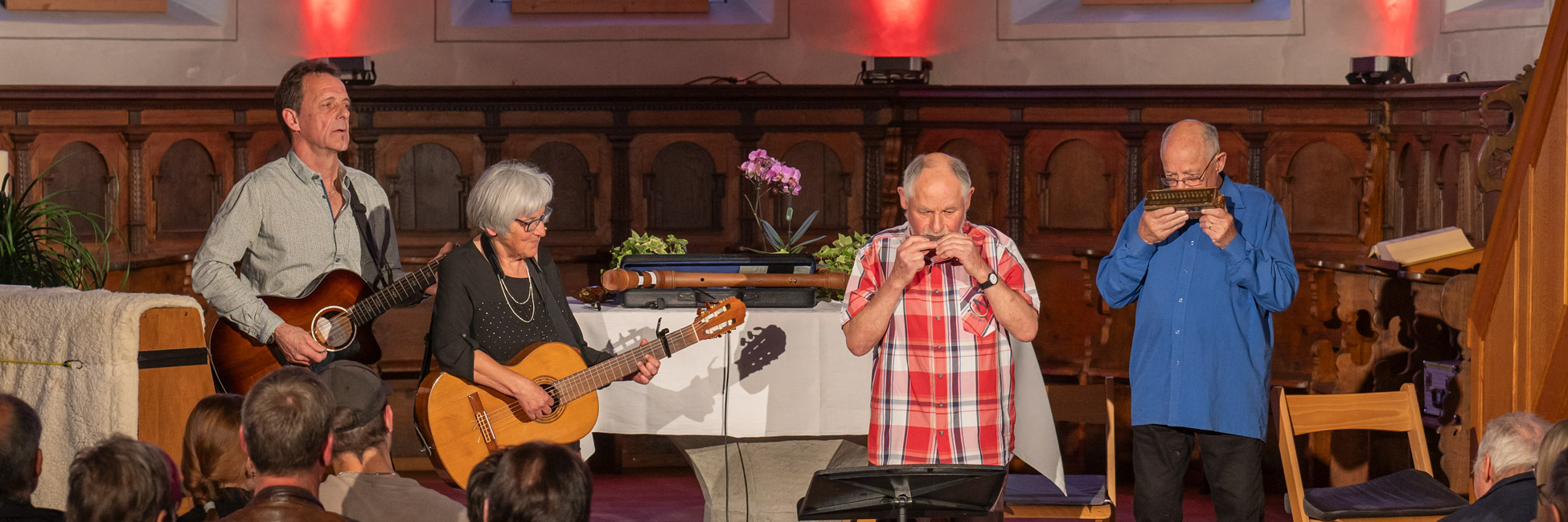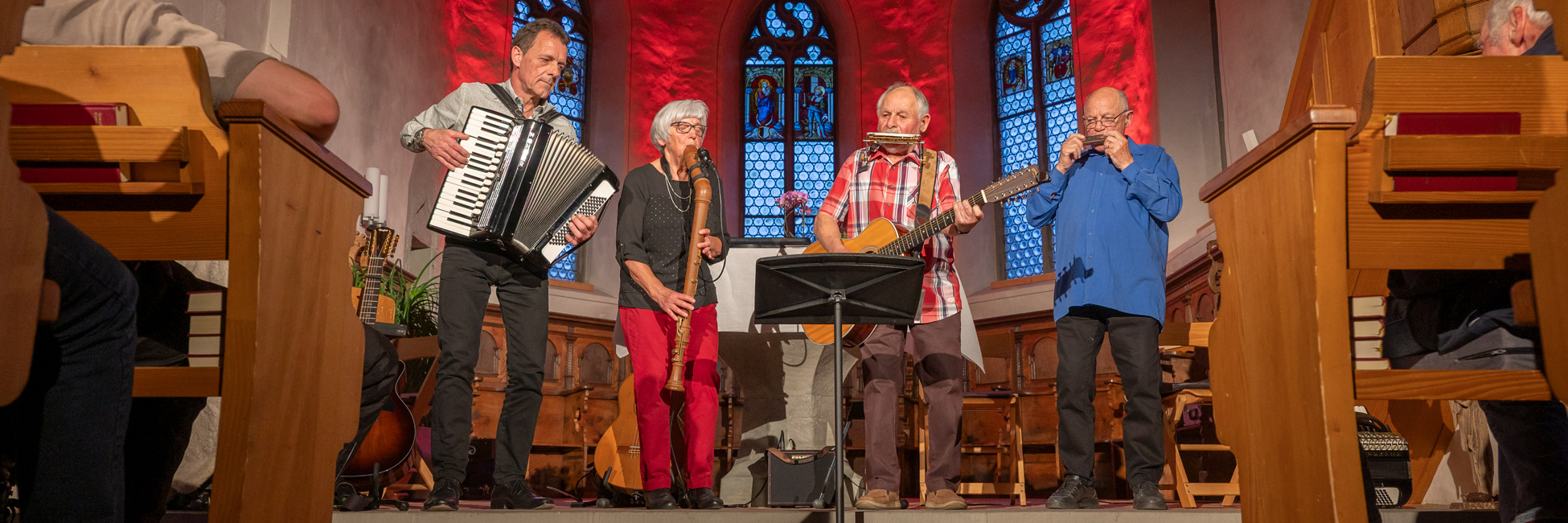 Selber auch schon seit langem im Pensionsalter, mit Ausnahme von Stefan, ist das gemeinsame Musizieren unser liebstes Steckenpferd. Perfektion ist nicht unser Ziel, selten sind unsere Auftritte ohne Fehler. Aber wenn unsere Musik mit alten Schlagern, Evergreens und Volkslieder dem Publikum ein Lächeln aufs Gesicht zaubern kann und den Alltag versüsst, ist das für uns der schönste Lohn.
