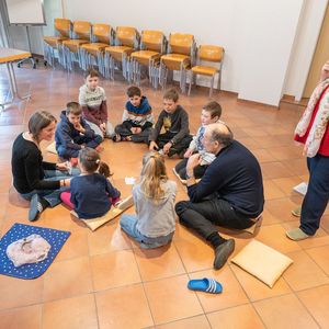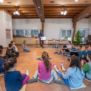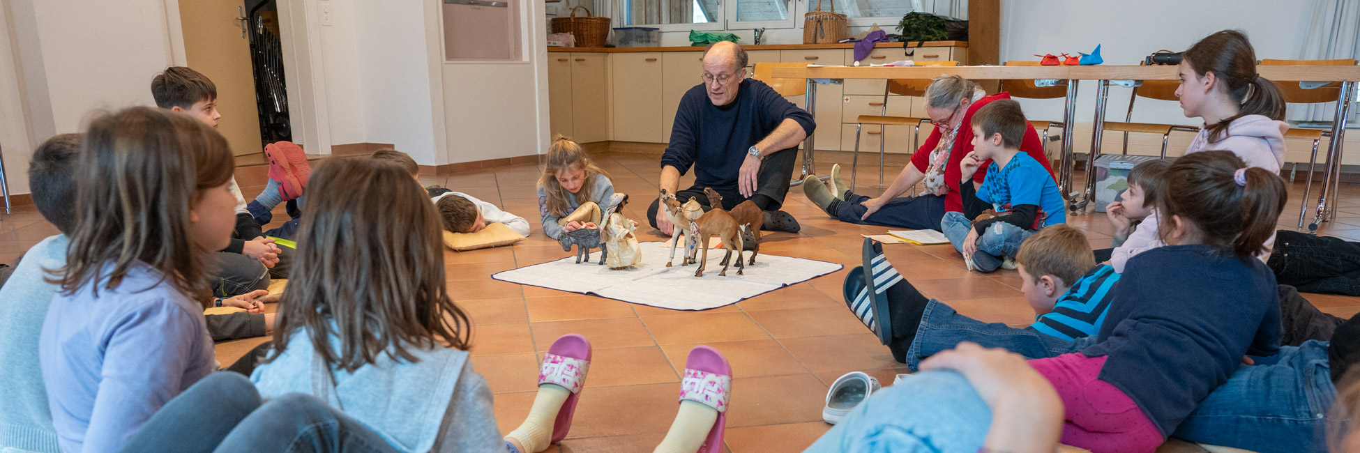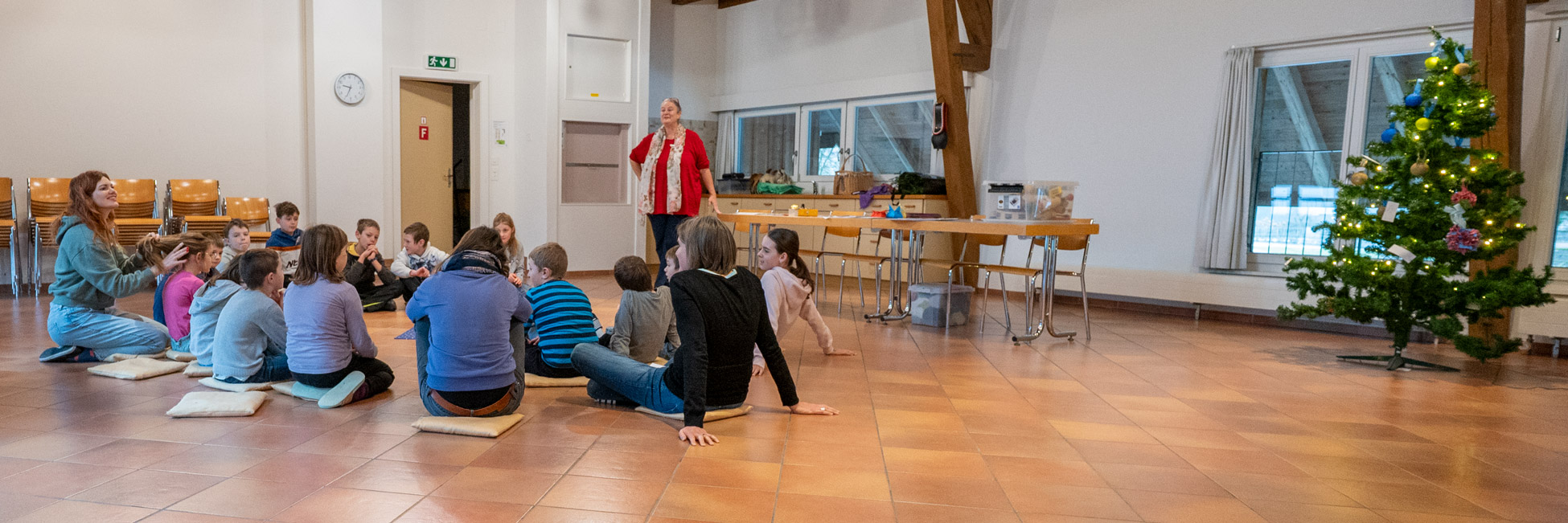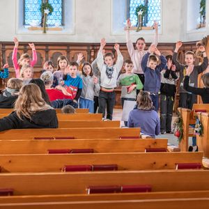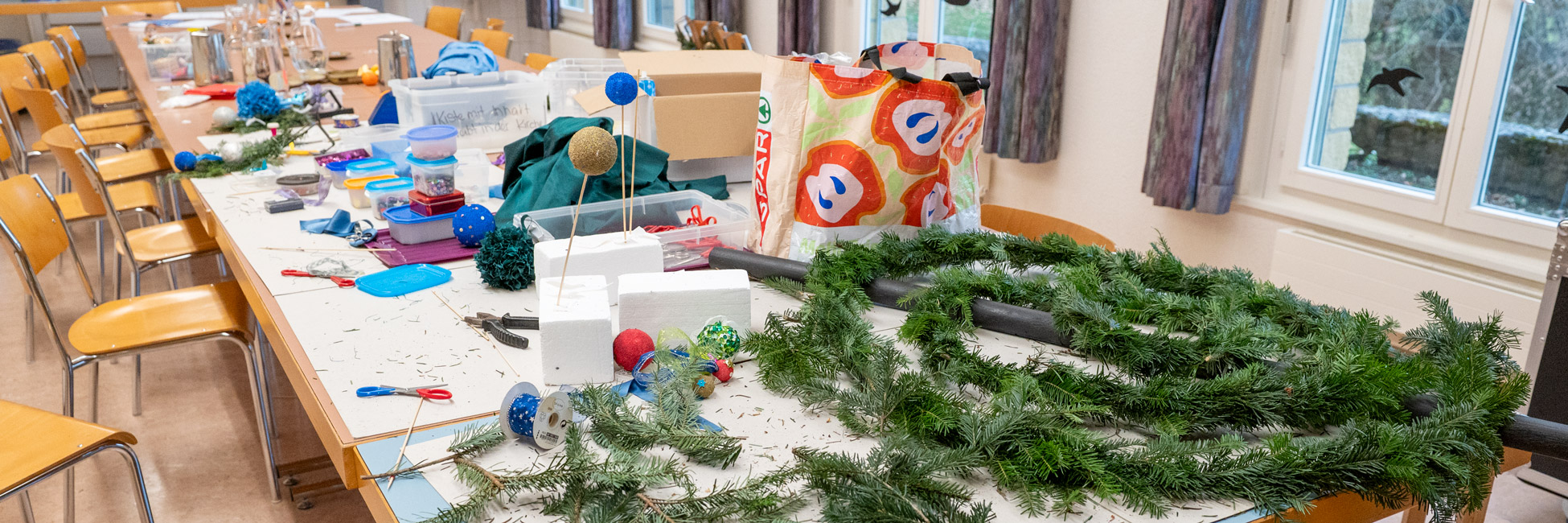 Am Nachmittag kamen die Kinder vom Fiire mit de Chliine dazu. Auch sie duften sich mit einer Engels-Geschichte auf die Feier einstimmen. Dazu gehörten das Basteln und Dekorieren eines Tannenästchens. Was auch für die Deko in der Kirche benutzt wurde.