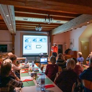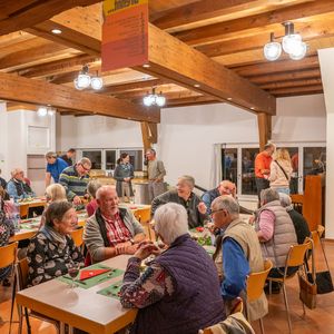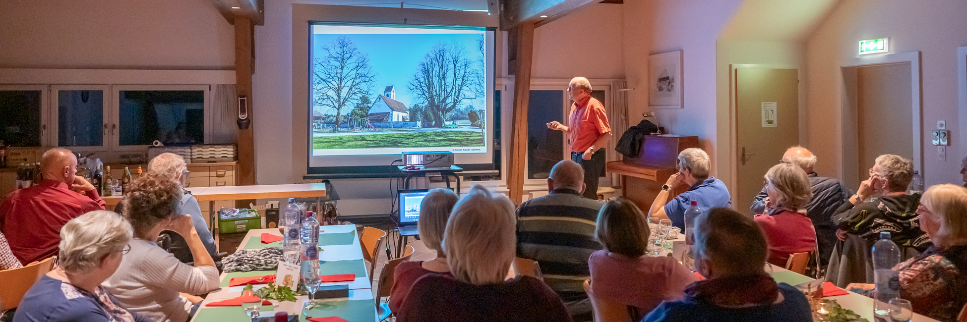 Das Zusammensein war geprägt von einer warmen, fröhlichen Atmosphäre. Es war spürbar, wie gut es tat, sich einmal zurücklehnen und in entspannter Gesellschaft, Gemeinschaft geniessen zu können. Ein besonderes Highlight des Abends war die Präsentation von Pfarrer Rolf Weber. Mit viel Engagement und Fachwissen gewährte er einen spannenden Einblick in die Geschichte von Grasswil, Seeberg und der Kirche. Seine Ausführungen verbanden historische Fakten mit lebendigen Erzählungen, sodass selbst langjährige Gemeindemitglieder Neues erfahren konnten. Dieser Beitrag wurde von allen Anwesenden mit grossem Interesse verfolgt und mit entsprechendem Applaus gewürdigt. Der Abend klang in gemütlichem Beisammensein aus und hinterliess ein Gefühl von Dankbarkeit und Verbundenheit. Wir freuen uns bereits jetzt auf den nächsten Anlass – und hoffen, dass dann für jedes Gedeck auch ein zweites Glas bereitsteht.