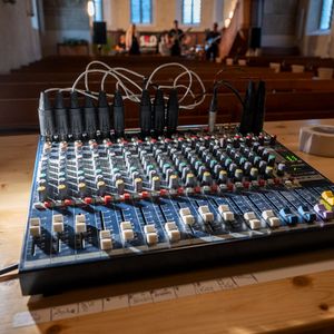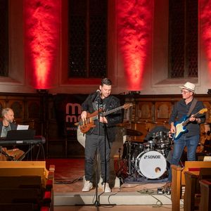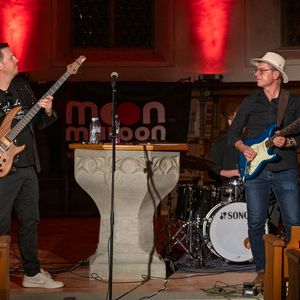 Kirchenakustik und verstärkte Musik stehen in einem natürlichen Spannungsverhältnis. Doch Dieter nimmt die Herausforderung gelassen an. Mit viel Geschick, Gespür und klangtechnischem Judo bringen er beim Soundcheck den Hall mit unserem Groove auf Linie. Es ist alles bereit; die Kirchenglocken schlagen 8 Uhr: „Spot on for Moon Maroon!“