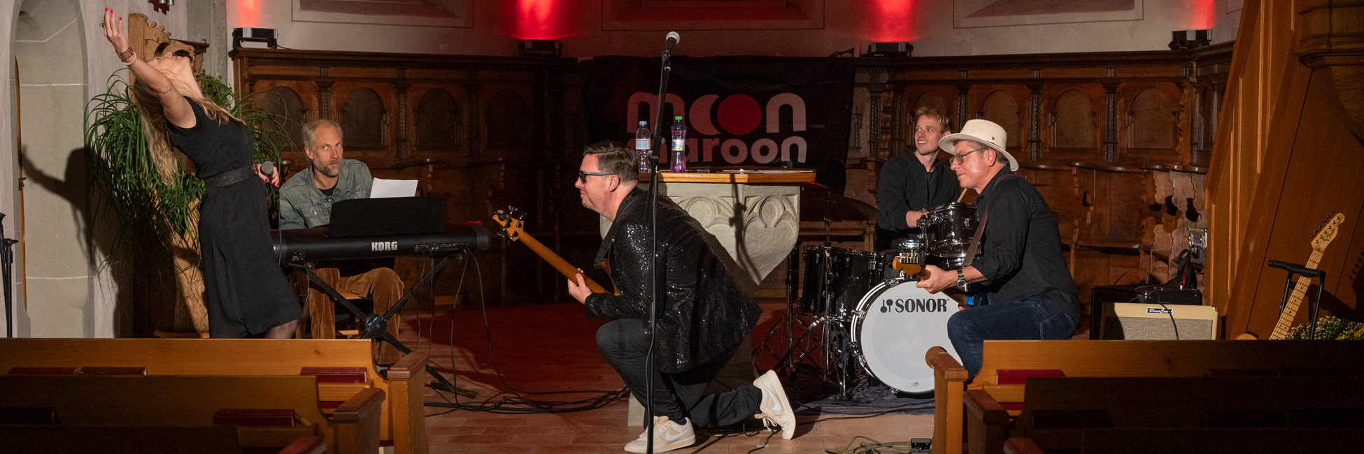 Idyllisch steht sie da im herbstlich-warmen Abendlicht. Die schmucke Kirche Seeberg. Mit ihrer Hügellage, wunderbarem Rundblick und mächtiger Linde empfiehlt sie sich auf den ersten Blick für jede Traumhochzeit. Ihre lange Geschichte reicht bis in die Zeit der Reformation zurück. So wird unsere Funk/Soul-Band „Moon Maroon“ beim gemütlichen Znacht von Stefan erfahren. Einem Mann, der kulturell einiges bewegt: ‚Seine‘ Kulturkirche steht nicht nur topographisch für Höhepunkte. Sie ist auch eine überregional bekannte Kulturinstitution mit vielfältiger Ausrichtung. Darum steht heute Abend Moon Maroon aus AG/ZH auf dem Programm.