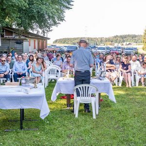 Der Wettergott war auch diesmal auf unserer Seite. Pfarrer Stephan Bieri aus Vorimholz begrüsste die zahlreichen Gäste. Das Thema des Gottesdienstes war «Weshalb nicht ein wenig glücklich sein?»