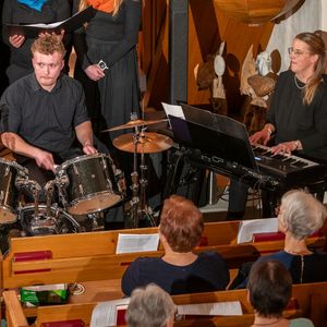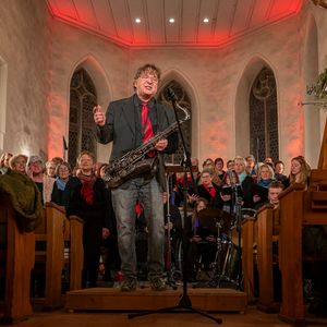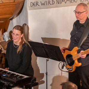 Insgesamt 7 Proben hatten wir zusammen, bevor dann am 21. und 22. Februar 2026 unsere Konzerte angesagt waren. Bei der Hauptprobe am Samstagnachmittag trafen erstmals die Band, bestehend aus Katharina Lüthi am Klavier, Beat Schüpbach am Bass, Gino Menzi am Schlagzeug und Christoph Schnyder an der Hammound Orgel, auf den Chor. Man merkte schnell, hier sind Profis am Werk.