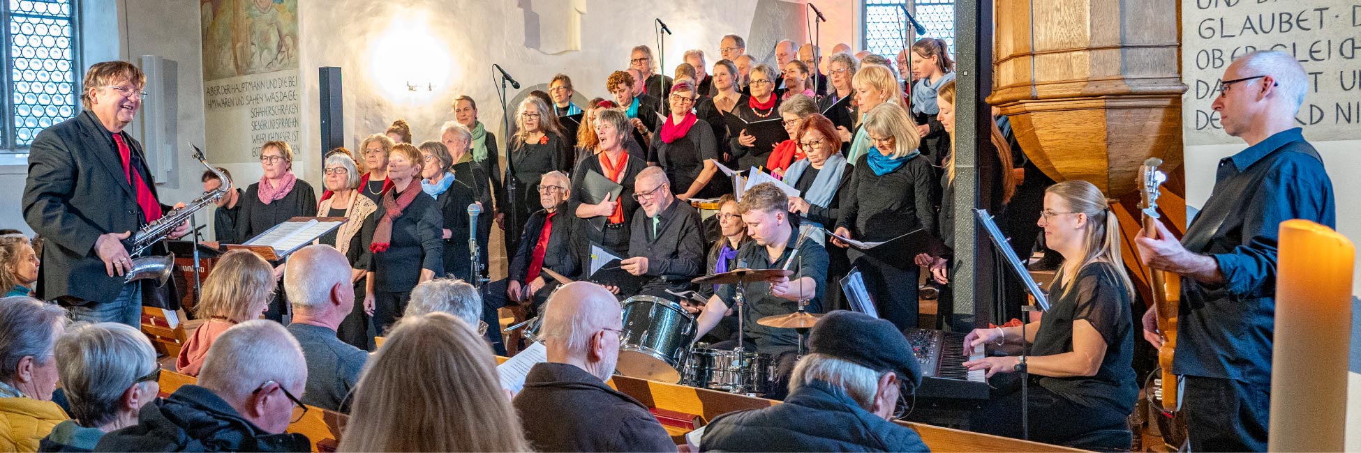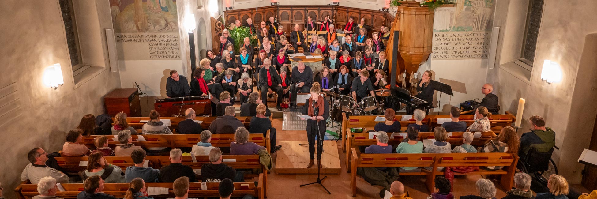 Anfangs Dezember ging es los, der Gospelworkshop startete. Mit über 60 Sängerinnen und Sängern im Alter von 15 bis 85 Jahren waren wir ein grosser Chor, so viele Anmeldungen hatten wir noch nie.