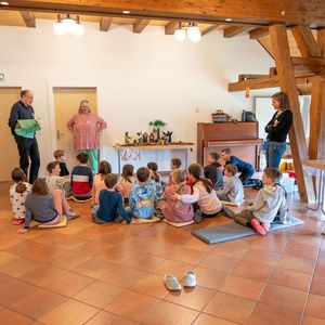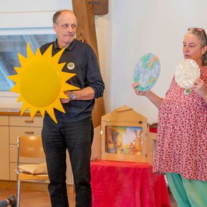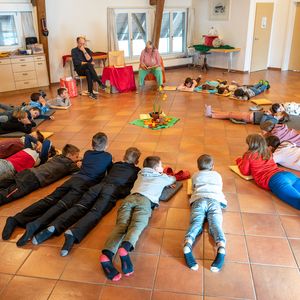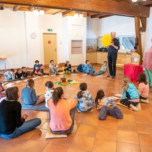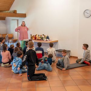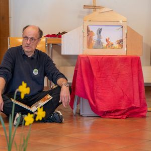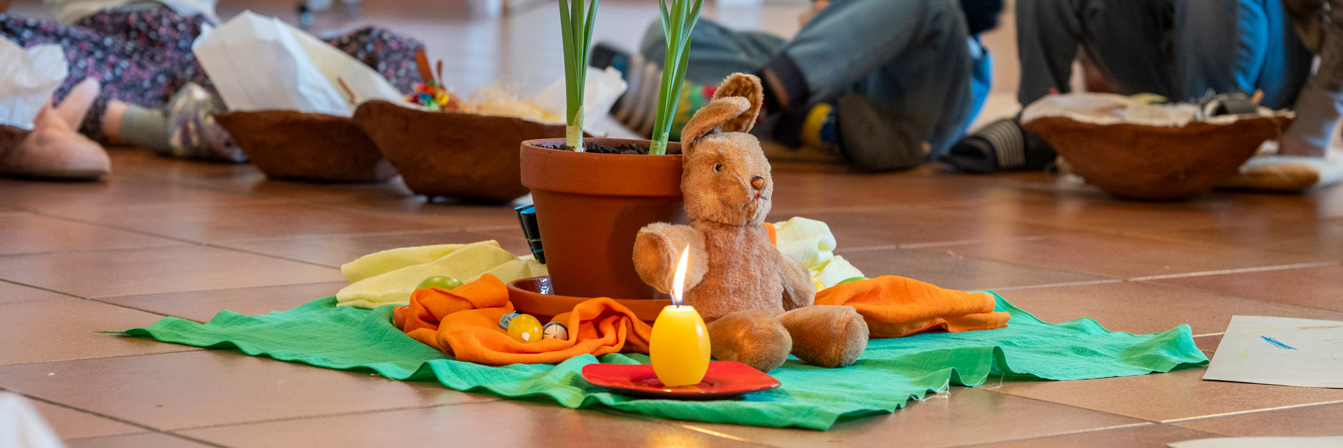 Mit dem Lied von Andrew Bond ‚Überall isch Gott‘ begrüsst eine grosse Schar Kinder und alle Helfenden den heutigen Tag. Ein Rätsel der vier Jahreszeiten bringt uns dem heutigen Thema schon näher. Es führt uns zum Frühling. In der Geschichte vom Hasen Pauli erfahren wir, wie es ist, vom Osterhasen überrascht zu werden. Ein kleines Osternest für Pauli, der allen anderen etwas versteckt hat, ist auch für ihn versteckt. Von wem wohl?