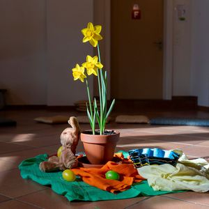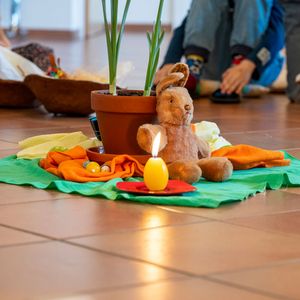 Wussten Sie, dass Ostern immer nach dem Frühlingsanfang, nach dem ersten Vollmond und dem ersten Sonntag danach, festgelegt wird. Ja, die Kinder wissen das jetzt. Und noch viel mehr; die ganze Karwoche lernten sie an diesem KiK-Morgen kennen. Von Palmsonntag, über Gründonnerstag, Karfreitag bis Ostersonntag. Mit Spielen, Singen, Essen und Trinken, Dornenkrone ausprobieren (AUA, tut das weh...) und dem Osterlicht. Die Kinder tauchten ein in das Leben von Jesus.