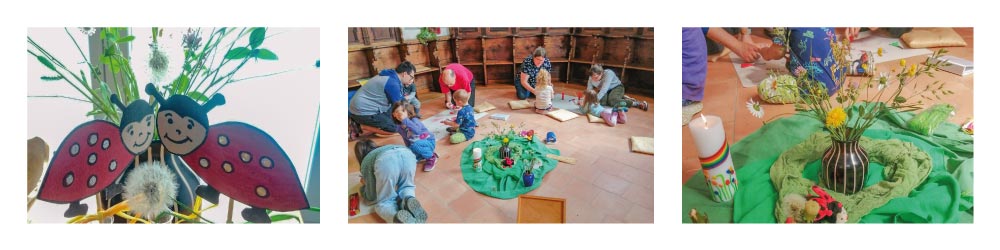 Am Eingang bekam jedes Kind eine Blume von der Frühlingswiese vor der Kirche. Und im Kreis teilten sie den