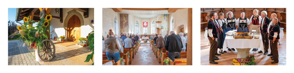 Wenn es am Samstagnachmittag vor und in der Kirche nur so wuselt, dann sind die Landfrauen am Werk. Unter fleissigen Händen und ab und zu einem herzhaften Lachen entsteht die Dekoration für den sonntäglichen Erntedank-Gottesdienst. Schon am Abend vorher hatte der Pfarrer mit der Sigristin die Schweizerfahne im Chor der Kirche aufgehängt: untrügliches Zeichen, dass der Eidgenössische Dank-, Buss- und Bettag bevorsteht. Dieses Jahr wurde der Gottesdienst durch die Jodlerinnen und Jodler des….