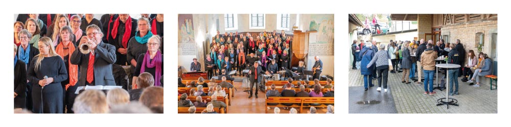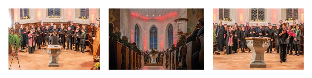Wir alle wurden durch nettes Personal empfangen. Parkplatzeinweisungen, Raumzuteilung, Lichteinstellungen, Fotograf, Podeste für eine optimale Choraufstellung, und nicht zu unterschätzen – eine wohltemperierte Kirche – alles wurde zu unserer Zufriedenheit, für unser Wohlbefinden getan. Das war sehr angenehm, nie selbstverständlich und hat sicher zum guten Gelingen….