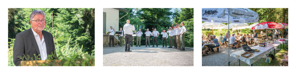 Der Waldgottesdienst fand bei prächtigem Wetter und grosser Hitze statt. Prädikant Urs Gfeller vertrat den sich im Bildungsurlaub befindlichen Pfarrer Rolf Weber würdig. Das von Urs ausgewählte Predigt-Thema «Schöpfung» passte gut in die «Waldkathedrale». Es war schön zu hören, wie er die Verbindung des Waldes über die Natur zur Jagd darstellte. Sein gewaltiger Wortschatz und die treffenden Vergleiche haben zum Schmunzeln verleitet und für den einen oder anderen Lacher gesorgt. Seine Worte überzeugten sowohl die Bläsergruppe als auch die Jäger und die übrigen Gottesdienstbesucher.